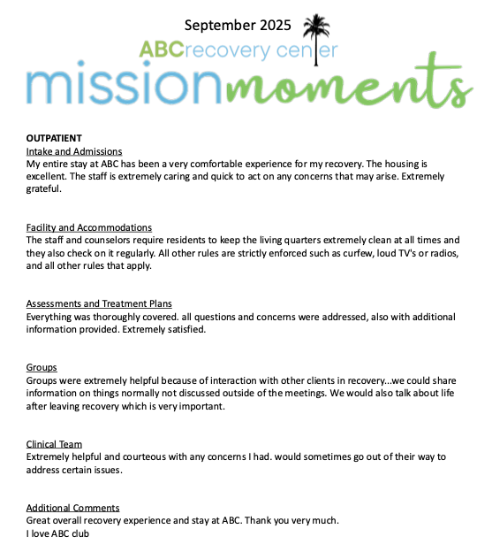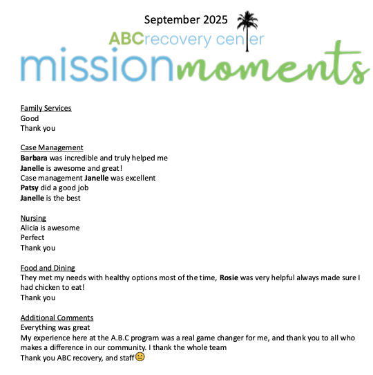 Our Mission: To provide an environment for those with substance use disorders to achieve lifelong sobriety and re-enter the community as healthy and responsible individuals. ABC Recovery Center reaches those in the greater Coachella Valley.
